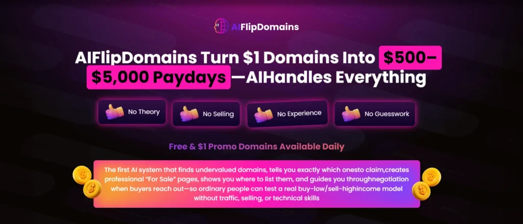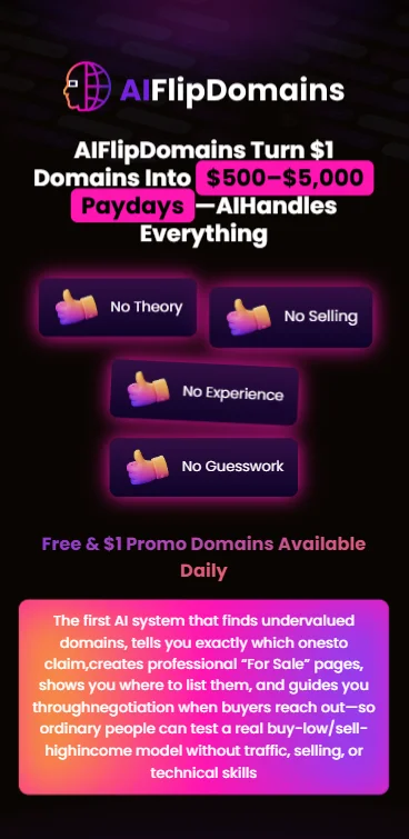 Unlike traditional affiliate models, AIFlipDomains does not rely on traffic generation. The system scans the aftermarket (secondary market) and identifies names that already have high buyer intent on platforms like GoDaddy and Sedo. It effectively removes the "guesswork" from digital real estate.